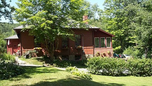This unique country home was formerly a one-room schoolhouse. It is solid brick with original paned windows, entry door, supply closet, and some of the original tin ceiling. All original woodwork. High ceilings throughout. Ceiling fans in living room, kitchen, loft and family room. A large loft overlooks the L-shaped living room. The living room can serve as a living room and TV room or dining room. There are two bedrooms on the first floor, one that could be used as a laundry room or bedroom. The living room has a vintage cone-shaped gas fireplace and original yellow pine floors. The unique kitchen must be seen. The family room is surrounded on three sides by casement windows (5 years old) and free standing gas fireplace. The house has two full baths, one on the loft level and one on the first floor. The roof is two years old, it is heated/cooled by a heat pump that is 8 years old with back-up propane heat (1 year old). The driveway is tar and chip. Yard surrounded by invisible fence to keep your pets safe. 2" wood blinds included. Wired for ADT. This is a must see!