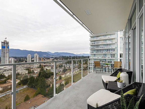 Unreal 2 bedroom sub-penthouse fts. over 10-ft ceilings that highlight incredible mountain views & let in tons of light to the 741sf open-plan layout w/ satellite bedrooms & a massive 25ft-long patio in the sky running the entire width of the unit. Welcome to The Marquee, from Bluesky Properties by Bosa, in the master-planned Lougheed Heights area of Burquitlam. 17000sf of amenities include fully-equipped gym, outdoor pool, BBQ stations & dining area, dog run & concierge. Superbly-appointed kitchen w/ large eating counter, dual-tone oak & white cabinetry w/ quartz counters, and integrated Bosch appliances w/ gas cooktop, roller shades throughout & bathroom fixtures from Grohe. One Parking, One storage, One epic home for you. SHOWINGS BY APPT