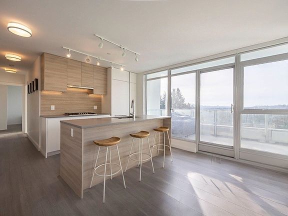 This luxurious corner unit features an open floor plan with stunning panoramic views of the city, valley, and mountains. The home boasts a modern open-concept design with 2 bedrooms and 2 full bathrooms, close to 870 sq. ft. The grand kitchen showcases premium cabinetry, elegant countertops, and high-end Bosch appliances with a gas cooktop. The desirable split-bedroom layout provides privacy, with bedrooms on one side and the bright living and kitchen area on the other. Located in the heart of Burquitlam, this residence offers unbeatable convenience, just steps from the SkyTrain, SFU, shopping, and dining. Enjoy resort-style amenities including a concierge, an outdoor heated swimming pool, & BBQ areas. Includ. 1 parking & 1 large storage locker. Don't miss out!