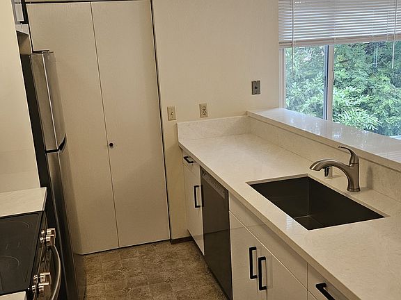Available now newly updated! Very sharp, clean and bright 1 bed, 1 bath apartment is roomy with lots of sunshine from south-facing windows. Large living room includes fireplace and spacious outdoor deck. Kitchen has new cabinets, counter-tops and appliances including stainless self-cleaning range/oven, microwave, dishwasher, and refrigerator. The bedroom is roomy with loads of closet space. Don't miss the walk-in pantry. This is a great apartment! Located about miles north of Ravenna/Cowen Park in a quiet walkable neighborhood. Easy biking distance to UW campus and to bus lines to everywhere. The neighborhood is populated with nice restaurants and is close to shopping, freeway access and transportation to downtown Seattle. Walk to the Roosevelt light rail station. A great location! One on-site covered parking assigned* Secured building, with intercom entry Storage locker included at no added cost One-year lease. Written minimum rental criteria available by request and posted in the unit, includes adequate income, references, and credit. No sight-unseen applications accepted. $45 application fee per person. $1150 deposits. Tenant pays City Light direct. Paid to landlord; $80 water/garbage for single occ. $45 p/person for addl. $10 token parking fee. No smoking. No pets.