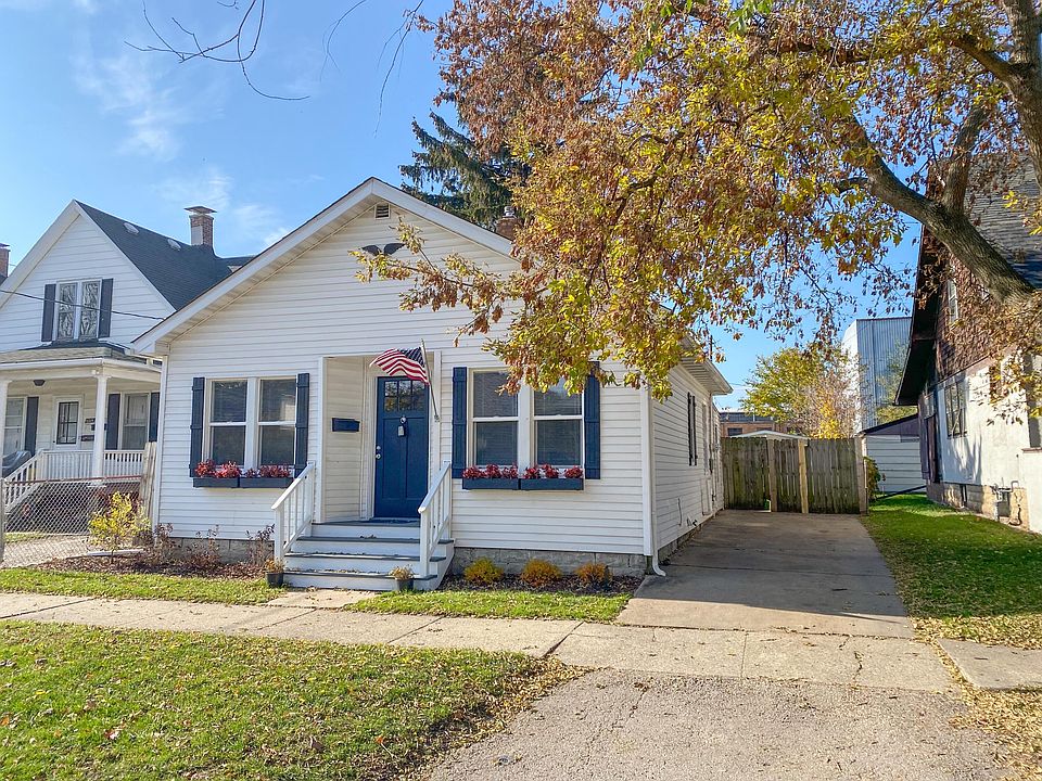 Welcome to this ready to move in charming 2 bedroom home that has been very well maintained and has tasteful colors throughout along with crisp white trim & doors. The fully enclosed porch opens to the living room with a built-in cabinet and is adjacent to the kitchen with an ample amount of storage. The updated bathroom is really nice with vanity storage along with another wall cabinet for even more. Enjoy the yard that is fenced and includes a shed for great storage.