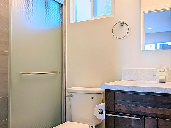 Freshly built in 2022, this nice 1-bedroom in desirable Rolando/College Area awaits you. - Located 1 mile south of SDSU in a safe and quiet residential neighborhood, yet close to shopping and amenities. 500sf. - Windows in all 4 directions. - Kitchen with all new cherrywood cabinets, Carrara quartz counter top, stainless steel gas stove & oven, microwave, peninsula with overhang for seating, and pendant lights. - Bedroom with two windows, closet, and additional storage space. - Luxury vinyl flooring that resembles sterling oak - Bathroom with porcelain tile shower stall and floor, glass shower door, cherrywood vanity, quartz counter, shower niche, and dual medicine cabinets. - Optional setup for home office or coffee bar. - New, quiet mini split AC and heat. - Washer and dryer on site, shared with only one other unit. Free usage. - 1 reserved parking spot on driveway - Available 12/24. - Rent is $1,840/mo for one, or $1,900 for two (due to more water and laundry usage). Water/sewer/trash and laundry included - Security deposit $1,800. - Indoor, well behaving cat or dog considered for $40/mo and $300 deposit - Non-smokers only please. Income 2.5x rent. Average credit or above. - One year lease. Month to month afterwards. Owner pay for water and trash. Tenant pays for SDGE. 1 year lease. Long term tenant preferred. Non-smokers only please (no smoking inside or outside).