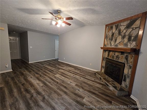 Welcome to this charming 3 bedroom, 2 bathroom home located in Fayetteville, NC. This lovely house features ceiling fans, a deck for outdoor entertaining, W/D hookups, an eat-in kitchen with a dishwasher, range, and refrigerator. Enjoy the covered front porch and foyer as you enter the spacious living room with vaulted ceilings and a cozy fireplace. The primary bedroom boasts a walk-in closet for ample storage. Additional amenities include central A/C, a microwave, smoke alarms, garbage disposal, and carpet & laminate flooring throughout. Step outside to the chain-link fenced backyard and detached outside storage. Don't miss out on this wonderful opportunity to make this house your home!