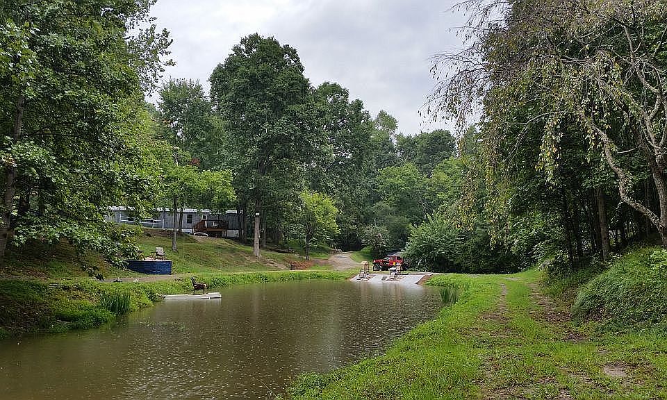 Build your dream home on landscaped 2.92 acres with drive-around spring-fed pond w/ concrete dam, concrete bridge, sandy beach, two driveways, giant hunting tower/sky patio, and 4-wheeler/hiking trails throughout. Bring your pets and your atv's! Includes fully furnished manufactured home (14x76) on well and septic with custom rear deck (14x12), wheelchair accessible front porch, detached 300 sq ft two-car garage, two small insulated buildings, metal shed, and expansive outdoor lighting. Backs up to 30+ acres of deep private woods on Wake county line. Old growth hardwoods provide prime habitat for wildlife. Deer herds seen regularly. 2 min to new food lion/fast food, 5 min to I-40, 5 min to Elementary School, 5 min to Neuse River for kayaking, 8 min to High School, 10 min to I-440, 10 min to US 264, 10 min to White Oak Crossing, 10 min to Clayton/Walmart, and 12 min to I-540 (soon to be 3 min).