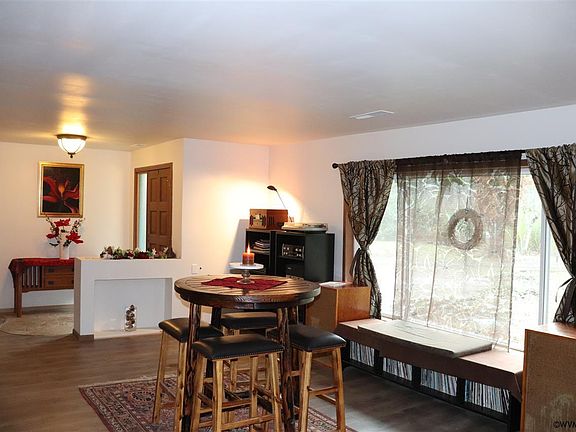 Accepted Offer with Contingencies. Beautiful spacious home on over an acre of wooded serenity. Formal living room with 2 sided FP that can also be enjoyed in the dining room. Large open family room. Huge kitchen with new updates including dishwasher and sink. Two bonus rooms that could be used as bedrooms. Small shop and a large pole barn. Peaceful but only a quick 2 minutes to town. **All reasonable offers considered**