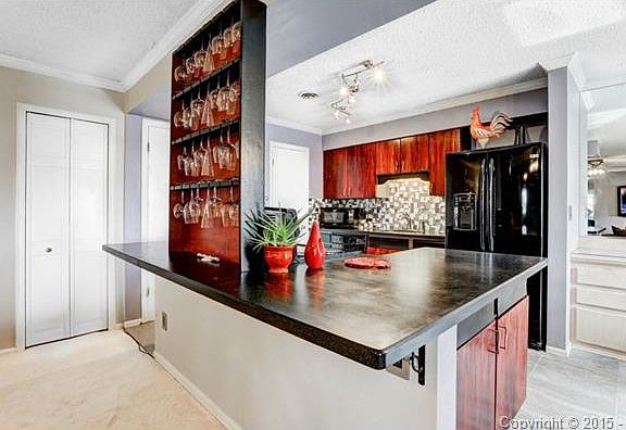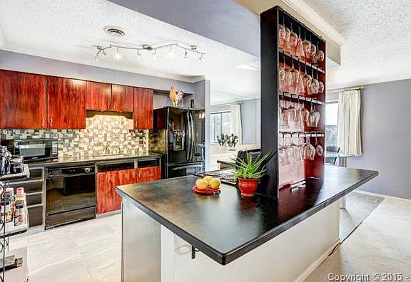 Newly renovated Rockrimmon condo! This 4th floor condo has breathtaking views and amazing outdoor patio! Access patio through living room or master bedroom. Remodeled kitchen is open and beautiful w/ stone countertops, new sink, tile flooring, glass tiled backsplash and custom wine glass rack. Main bathroom completely redone with jetted tub, tiled shower, surround and floors, new light fixture, mirror and glass vanity. Complex amenities include tennis court, rec center, indoor pool and work-out area. Don't miss this one! 4th floor condo has elevator in the building! Condo has many upgrades including, kitchen and dining room flooring, paint, new outdoor patio subfloor, new light fixtures in kitchen and bathrooms, upgraded electrical outlets and switches, new refrigerator and convection oven/range, new energy efficient toilets in both bathrooms and a built-in, two person work center in office. This condo is equipped with a garage parking space, central air-conditioning, a gas fireplace, two kitchen pantries, and amazing views from all bedrooms! This one won't last long! Come and see it!