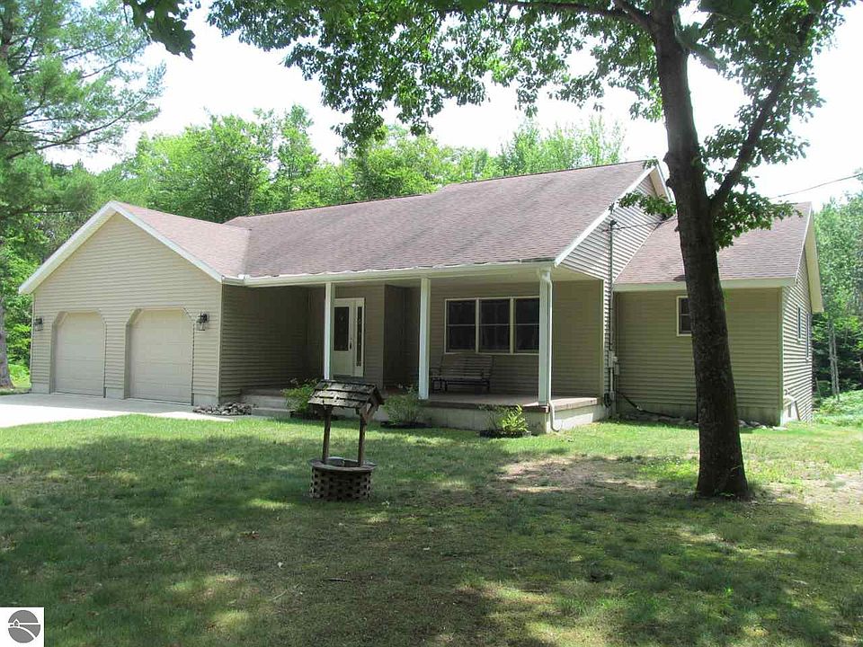 Fabulous 4 bedroom home on 10 wooded acres! 3 bathrooms, spacious island kitchen with pantry, fully finished, walk-out lower level with 9' ceilings has a large family room, 2 of the bedrooms, 1 of the bathrooms, and an office/ den. Laundry room is on the main floor! 10' Ceiling in living room, large master suite with a jetted tub and separate shower. Great floor plan along with central air, water softener, and all appliances stay! Now step out side and enjoy your 16' X 16' deck overlooking this panoramic wooded setting! PLUS the attached, heated 2 Car garage AND the 34' X 36' additional frame built garage...also heated! (room for all the toys, or workshop area!) Lovely home...you'll WANT to see this one!
