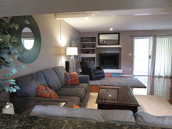 Well cared for end unit townhouse styled condo close to Campbell Creek Greenbelt. Upgrades include granite kitchen counters, laminate wood floors, private fenced yard w/ 2 decks, Bonus room of approx 275 sq.ft with 3/4 bath off garage included in total square footage listed above. Private bath off master bedroom, built in hutch off dining area, mountain views, East & South sun pours into home. FP.