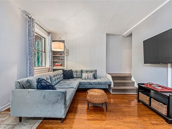 Charming end-unit row house less than one block from Highland Park! Well maintained and bright, this home features a welcoming front porch, an eat-in kitchen, and a large rear deck to enjoy the outdoors. Upstairs you will find a full bath, two bedrooms, and a bonus room that can be used for an office or nursery. The basement features new ceramic floors, a new boiler, and plumbing installed for a half bath, should you want to finish creating one. The basement walls are also studded out for finishing. Exit the basement at ground level to the back yard where you'll find a garden shed. Complete with a mini-split cooling system for the summer, this home is move-in ready!