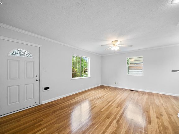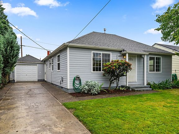 Remodeled University Park Single Level. Two blocks to McKenna Park and playground. Living room with beautiful hardwoods, updated windows. Modern open kitchen with granite tops, tile floors, nook. Two bedrooms with remodeled bath off hallway. Spacious laundry room with floor to ceiling storage. Huge family room with fireplace. Attached garage. Fenced yard with charming patio. Backs to alley, which gives strong ADU potential. Move-in-Ready! Click Vtour link for 3D walk through. [Home Energy Score = 3. HES Report at https://rpt.greenbuildingregistry.com/hes/OR10185227]