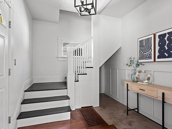 Gorgeous 4th generation Moreland Stunner! Owned by the same family for decades, has an open floor plan on main, beautifully renovated, and ready for the new owner. Gleaming hardwoods throughout main floor, high ceilings, walls of windows for great natural light. Remodeled kitchen w/ new quartz counters, tile backsplash, updated appliances. New high-efficiency gas furnace, roof and gutters. Main floor bedroom and full bathroom. Primary suite w/ double closets. Bathrooms w/ new fixtures, paint, cabinets, counters & more! Lower level bonus room & amazing storage area. Mud room/laundry. Also includes A/C! Beautiful yard with patio, gazebo, and with turf. Oversized detached garage with workshop and attic storage. Walk to restaurants, shopping, groceries & more! [Home Energy Score = 1. HES Report at https://rpt.greenbuildingregistry.com/hes/OR10214524]