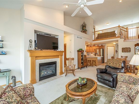 Looking for a quiet street, great view of a pond, no lawncare or snow removal? Search no further - this 1.5 story has been preinspected /radon tested and is ready for you! Step inside and you'll love the vaulted ceiling with kitchen/dining area/family room/laundry and master suite on the main level....the loft has an area for an office, bedroom and a full bath. The lower level is a walkout, just steps away from the water. It is unfinished and ready for you to add your own personal touches. You'll enjoy the relaxing view of the water from the deck or the patio - easy living!