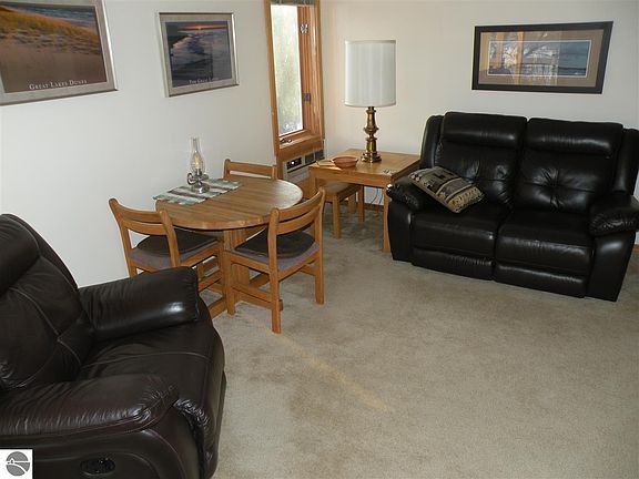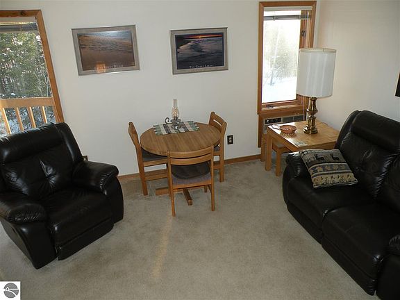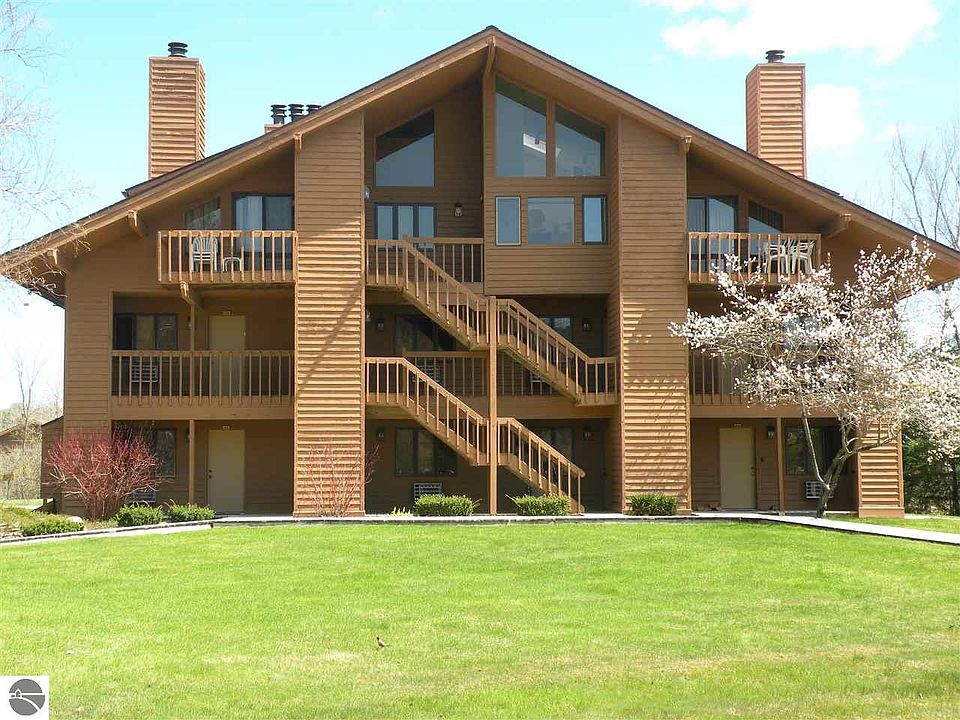 This well maintained and recently updated Cortina Condominium is an exterior unit with larger deck over looking the 1st fairway of the Schuss Mountain Golf Course. Located at the foot of Schuss Mountain this 2 bedroom condo is walking distance to the Schuss Mountain golf course, the ski slopes, cross country trails, Ivan's Restaurant, indoor and outdoor pools, and the party store/ ski shop. Leave your car parked and enjoy all that this location has to offer. Recent updates include, interior painted, new flat screen T.V., new refrigerator, new leather recliner and matching leather reclining couch, new lamps in mater bedroom and window screens. See it today.