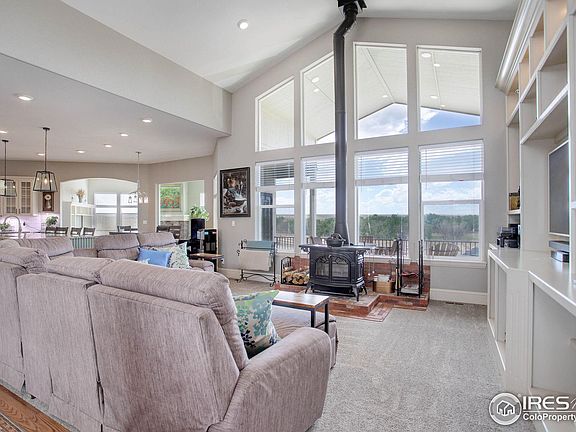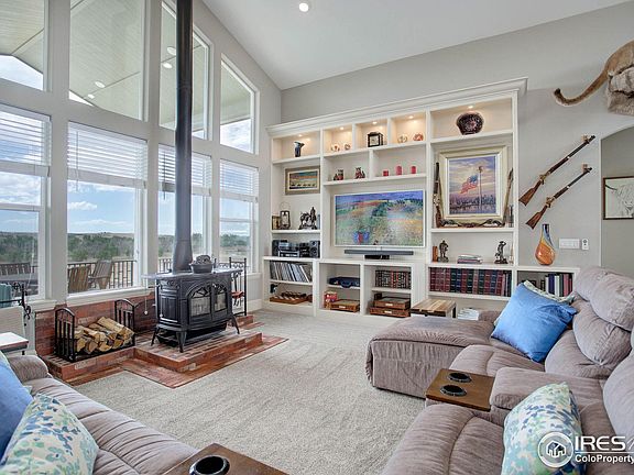 Welcome to the Lazy MJ Ranch, an exceptional private property spanning over 35 acres. It boasts luxurious living spaces, a barn, outbuildings, and nearly every amenity imaginable; you will never want to leave. The fully fenced estate greets you with a solar-powered gated entry that leads to a circular motor court and grand entrance. You are welcomed into the home with high ceilings and huge windows that overlook the grounds and provide and abundance of natural light. The formal dining room embraces festivities. The kitchen is a chef's dream and offers a huge prep island with breakfast bar, farmhouse sink, and walk in pantry. The sumptuous main level primary suite is a secluded retreat, boasting a luxurious 5 piece bath with soaking tub. Stunning vistas can be enjoyed from the second primary bedroom on the main level with en-suite bath. The walk-out lower level makes a great gathering space and features a sun-room and hot tub. Two secondary bedrooms on the lower level are spacious and bright. A secret door leads to a gym or flex space. Entertainment options are abundant and include multiple deck/patio spaces, a sparkling pool with slide and enhanced lighting, outdoor kitchen, play area, a shooting range, riding arena, & loads of outdoor recreation. The barn is outfitted with a studio apartment, perfect for guests or caretaker. For those wanting to raise cattle, there is an Arrowquip BudFlow tub, alleyways, and a squeeze chute. Automatic heated waterers complete the animal amenities. The property is meticulously maintained, and with the finest finishes and its array of amenities, it is one of Colorado's most remarkable private estates.