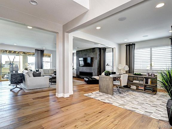 - Description: Main Floor Luxury Wide Plank Flooring And Built-In Speakers Throughout Interior And Patio Of Home. Spacious Great Room Boasts A Cozy Fireplace And Open Concept Floor Plan