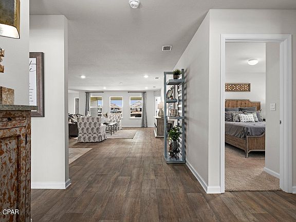 Welcome to the Sawyer floorplan located at 6521 Haskins Drive in the Liberty community! This home features 5 bedrooms, 3 full bathrooms and a two-car garage. Two bedrooms with a shared bath are just off the entry. This home features a large open living area and dining area. The kitchen overlooks the huge great room, making this the perfect home for entertaining. There is a laundry/mud room just off the garage with plenty of space for a washer and dryer. The kitchen features a center island, large pantry, beautiful white cabinetry and an appliance package that includes a stove, microwave and dishwasher. The primary bedroom features an ensuite bathroom with dual sink vanity, a large soak tub and separate shower. Additional features of this home include EVP flooring throughout the common areas and carpet in each bedroom. Equipped with Smart Home technology, this home has a Quolsys touch panel installed that can be integrated with your smart thermostat, DEAKO smart lighting and can even secure your home! The exterior of this home features Hardie Color Plus Siding and is uniquely engineered to stand up to the harshest elements from wind, rain, fire, freezing temperatures, and hail. Dimensional shingles with 30-year warranty. A landscaped front flower bed at entry way and fully sodded where clear. Our Liberty community features underground utilities making it less susceptible to damage from severe weather leading to fewer outages and more reliable service. Homeowners can take advantage of two amenity centers with keycard entry and enjoy two pools, a splash pad, BBQ/picnic area, playground, gym, yoga room, poker room, pickleball court and basketball court in the Liberty neighborhood! Schedule a tour to visit this neighborhood today! Home and community information, association fees, included features, terms, availability and amenities are subject to change at any time without notice or obligation. Drawings, pictures, photographs, videos, square footages, floor plans, elevations, features, colors and sizes are for illustration purposes only and will vary from the homes as built. Landscaping and furnishings may be decorator items not included in the purchase price and may not be available.
