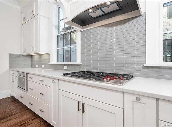 New luxury townhome with private elevator in the heart of SouthPark. End unit with limewashed exterior brick, covered paver patio, covered balcony, and 2 car garage. Open floorplan with hardwood floors throughout (tile in full baths and laundry). Kitchen includes a Wolf cooktop and wall oven, wine fridge, quartz countertops, glass tile backsplash, undercabinet lights, and deluxe construction cabinets with dovetail drawers and soft-close doors. Large master suite with walk-in closet and freestanding tub and heated floor in master bath. Gas log fireplace, built-ins, crown molding, site-built closets, framed mirrors, dual flush toilets, Ring video doorbell, and tankless water heater. Part of the Environments for Living Program with an energy performance guarantee. Ideal SouthPark location a short walk to many shops and restaurants. See Matterport virtual tour of similar unit (same floor plan, finishes vary)