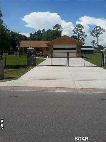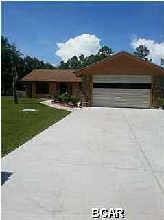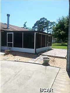 This property is totally unique!! Stone and vinyl siding 1735SF IMMACULATE HOUSE SITTING ON 1.5 FENCED ACRES IN THE COUNTY APPROX.1 MILE FROM TYNDALL PWY. HORSES WELCOME in the modified 30x30 4 stall BARN with hay loft. RV ENCLOSURE 17x27x12 feet. 2-Additional storage units 18x21. Hurricane shutters are installed on all house windows and doors. The house is a split bedroom plan with custom cabinets and ceramic tile floors in kitchen, dining and baths. The vaulted ceiling wood floor great room has a fireplace and French doors open to a large terrazzo floor screen porch. The kitchen has a breakfast bar and plant window over the sink, a 13x12 dining room and large inside laundry room. All 3 bedrooms have carpet. The master bedroom has 2 large separate closets and a handicapped