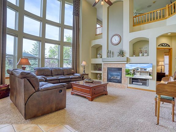 New price! Great south facing Castle Pines main floor master, lives like a ranch! You will love the impressive open floor plan with soaring two-story vaulted ceilings, highlighted with 18 foot floor to ceiling windows that fill the rooms with tons of natural light and architectural details. The first floor features a vaulted living and dining room, vaulted foyer, kitchen and family room with gas fireplace, master bedroom, 5-piece bathroom and walk-in closet, powder room and laundry room with cabinets and a sink. The kitchen has 42" maple cabinets, including pantry with roll-out shelving, new induction cooktop, double ovens, Corian counters, breakfast bar, and desk. Upstairs is a spacious loft with amazing views, 3 bedrooms, and a full bathroom. Finished basement includes a rec room/game room, private bedroom with walk-in cedar closet and full bathroom, as well a huge storage room. The large backyard has a beautiful paver patio, flat yard, mature trees, and is fully fenced. This home is conveniently located near I-25, walking trails, bike paths, a neighborhood pool and Coyote Ridge Park. As you walk into this stunning home, you will feel a sense of light and spaciousness as well as ease of living. Make this beautiful home your own in Tapadero at Daniels Gate.