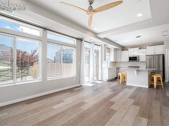 Welcome to the luxurious Banning Lewis Ranch in Colorado Springs, where modern elegance meets cozy comfort *This 2018 three-story home with a bright and open concept is sure to check all of your boxes! As you step inside, you'll be charmed by the open kitchen and inviting great room—the perfect space for hosting guests or curling up with a good book in front of the cozy fireplace* Kitchen is well appointed with stainless steel Kitchen-Aid appliances, a gas range, pantry and a nice sized island with granite countertops and quartz countertops are featured in the rest of the kitchen* All three spacious bedrooms are located on the second floor along with two full bathrooms and a convenient laundry room complete with washer, dryer, folding shelf and built in cabinets* Take it up one more level and you'll find an extra large space that could be used as an entertainment area, office, work out space, private retreat, 2nd spacious living area or get creative with its many possibilities! When it's time to relax step outside and let yourself be whisked away by your very own backyard oasis; featuring a 19X8 cobblestone patio that's perfect for outdoor dining & barbecues and has an open space with walking trails behind the home* And don't forget about the amazing amenities right at your fingertips; 24-hour fitness center, heated pool, walking/biking paths, a dog park, loads of open space, a playground area and tennis courts... you name it this community has it! Come find out why this is such a sought-after neighborhood*Situated on a quiet cul-de-sac, this home offers both privacy and a sense of community* The location provides tranquility away from the hustle and bustle, yet it's conveniently close to schools, shopping, dining, parks, military installations and other essential amenities* Experience the perfect combination of comfort and style* Don't miss out on this amazing opportunity; come view this beautiful home today!