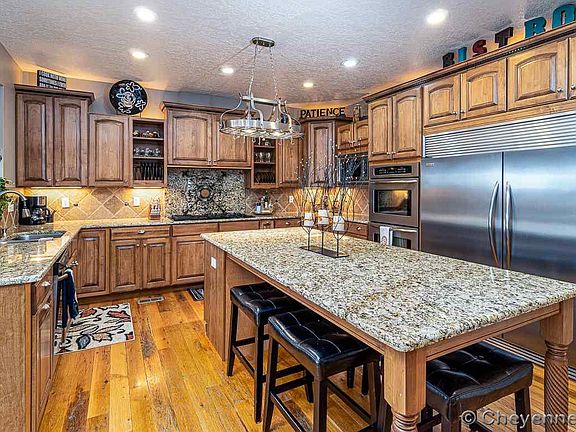This custom built Fox Run home has 5 bedrooms and 4 full baths. A entertainers dream. From the chefs kitchen with Jenn-air stove top with grill and flat plate to the commercial fridge and double ovens and 8 ft middle Island. Lg dining area. See thru gas fireplace separates the kitchen & Living room. Downstairs is a man cave right out of HGTV. Huge wet bar, theatre room, pool table, poker table. Fireplace that heats the whole house. Outdoor kitchen, gas fire pit and lots of trees. Paved roads to your garage.