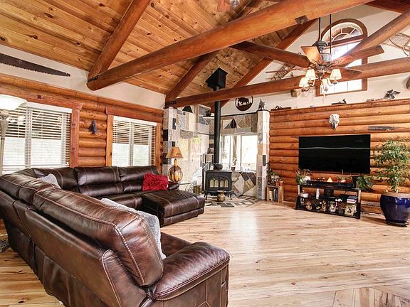 Round up your family and escape to this wonderful home nestled in on 2.24 tranquil acres surrounded by natures beauty. This is country living at its best! A gorgeous Tahoe style log home showcasing rustic logs, exposed beams, hickory flooring, Antique glazed cabinets, Solid Pine Doors, Brazilian Cherry floors 5 bedrooms/3 bathrooms & much more, all offing a warm inviting country feeling for you to enjoy year around. You even have private community river access to enjoy those warm summer days
