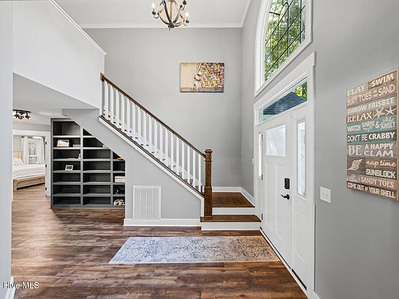 Stunning home in Gorman Plantation filled with costume features. This 4 bedroom plus bonus room sits in a family friendly neighborhood only 1/2 mile from Ogden Elementary, less than 2 miles to Mayfaire and 4 miles to Wrightsville Beach. This great location with NO city taxes and No HOA! Inside find a double height foyer with custom bookshelves built into the staircase. An open concept kitchen complete with quartz countertops, gas stove, soft closed cabinetry and large island opening up to a cozy living room with gas fireplace and breakfast nook. Head outside to find a deck perfect for grilling, a new hot tub and lots of mature landscaping giving tons of privacy. The primary suite has a large walk in closet and impressive custom ensuite bathroom. Find double vanities, heated floors, and a full glass enclosed shower with freestanding bathtub. The main living is complete with half bath for guests, laundry room and a formal dining room. Upstairs you will find 3 additional bedrooms, a full bathroom and completed bonus space above the garage (not included in heated square footage!). Home can be offered fully furnished and turn key.