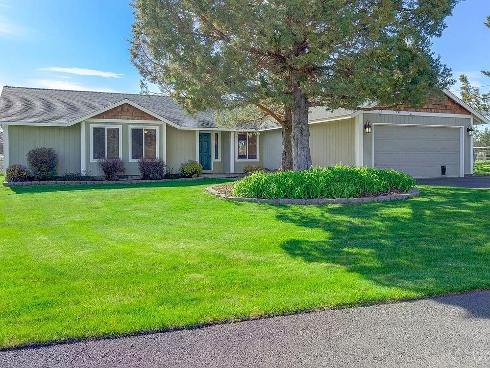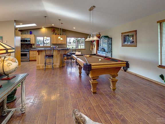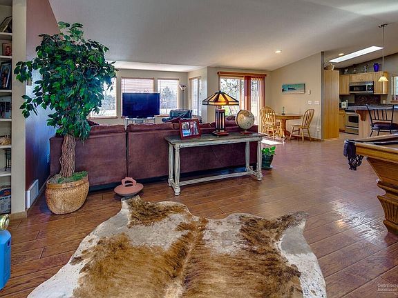 Updated ranch home with vaulted ceilings in the great room, engineered wood floors, kitchen island with seating. Master suite Expansive view of the ochoccos. Just under 5 acres set up for horses or cows. 2.74 acres of Tumalo Irrigation. All underground irrigation. 3 stall barn with hay storage and tack room. Round pen, shop an more.