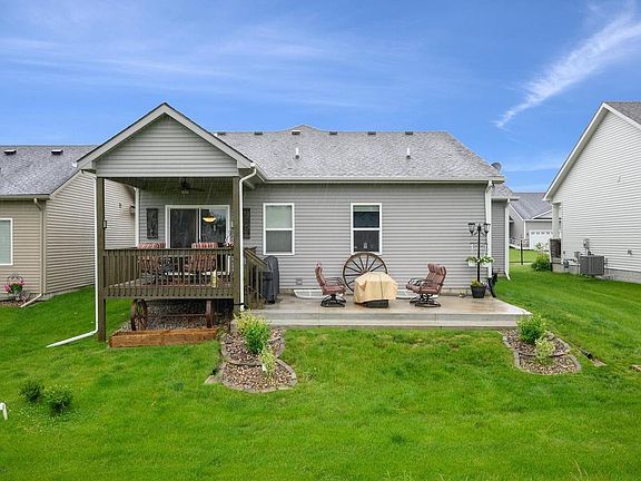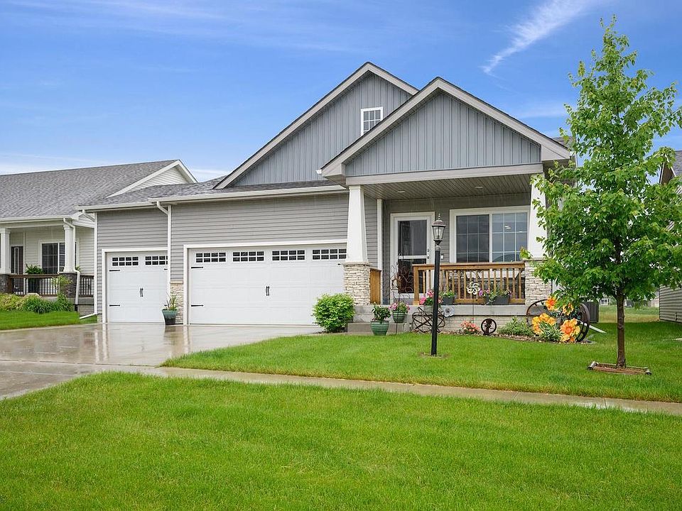 Golf course view ~ Located just West of Interstate 35 (Corp Wood Exit) leaves you 15 minutes from downtown Des Moines & 20 minutes from Ames. Charming curb appeal w/ the front covered porch & craftsman style columns w/ stone! This Stand Alone Villa has over 2300 + sq ft finish w/ 3 bedrooms, 3 bathrooms, AND a 3 car garage! Very open floor plan & the focal point is the beautiful Kitchen featuring Expresso cabinets, granite countertops, center island and stainless steel appliances. The separate dining area is roomy & looks out to the covered deck & oversized patio. The entire back of the house has gorgeous views of the executive 9 Golf course at Woodland Hills! You love the nice size family room w/ gas fireplace, 3rd bedroom and bath in the lower level! Laundry is conveniently located on the main floor, but additional hook ups are also in the lower level. Only minutes to all the Ankeny amenities. Lawn care, snow removal, and trash disposal are covered in the rent. Association fee is included in the rental fee and it covers snow removal, lawn mowing and trash disposal.