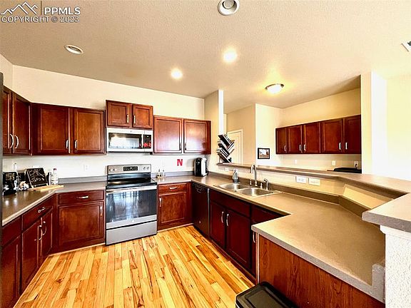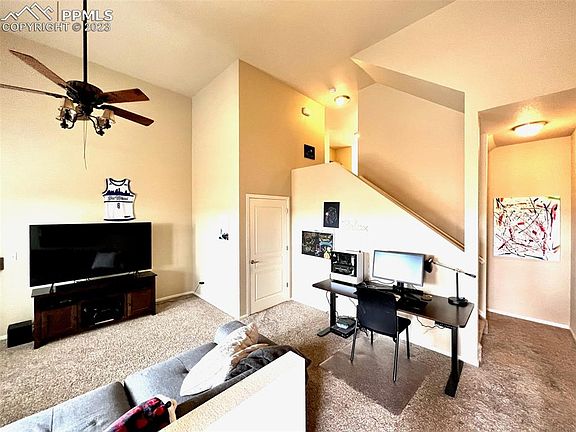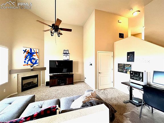 Beautiful Townhouse with great access to Powers Corridor and shopping. Spacious living room with 14' vaulted ceilings and gas fireplace. Hickory Hardwood Floors. Newer GE Stainless Steel appliances in kitchen. Upgraded kitchen cabinets with pullouts for efficient storage. Air Conditioning. Large 10x20 deck. Carpet has upgraded pet barrier pad. Large walk-in closets in both bedrooms. Large crawl space provides lots of extra storage* Oversized 2 car garage. ...and to top that off, Stunning Pike Peak Views from the back deck and back of house!