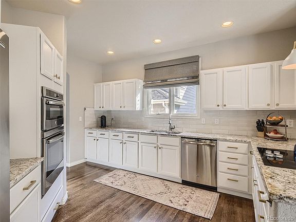 Significant price reduction!! This gorgeous home features designer finishes and includes beautiful hardwood floors on the main level, upgraded doors, light fixtures and hardware throughout. The kitchen is complete with beautiful stone countertops, newly refinished cabinetry including new hardware and soft close cabinets, large pantry and gorgeous new light fixtures. As you enter the home you'll see towering ceilings (perfect for an extra tall Christmas tree), refinished stair railings leading to the second floor and beautiful archways. French doors lead to a main floor study/office or could be utilized as a non-conforming 4th bedroom. The main floor also features a formal living area, dining space, living room and breakfast nook as well as a powder bath and mudroom. The double fireplace separates the living room from the breakfast nook and is perfect for the Colorado Fall and Winter months. The Huge Primary bedroom also features a cozy fireplace with a sitting area perfect for enjoying your morning coffee or reading a book in the evening. Primary bedroom is a retreat featuring a large walk in closet and 5 piece en suite bathroom. This home is located on a quiet cul-de-sac with no through traffic. SOOO much storage and the 3-car tandem garage provides plenty of room for 3 vehicles, a work space or extra storage. Heated room in garage is perfect for pets and includes pet door to backyard. Lifts and bike racks are included as well as all appliances including the washer and dryer! Backyard and patio are perfect for entertaining. Full unfinished basement is great for adding additional living space in the future or enjoying as a bonus flex space. The Pierson Abode awaits a wonderful new owner! Check out the website - www.piersonabode.com