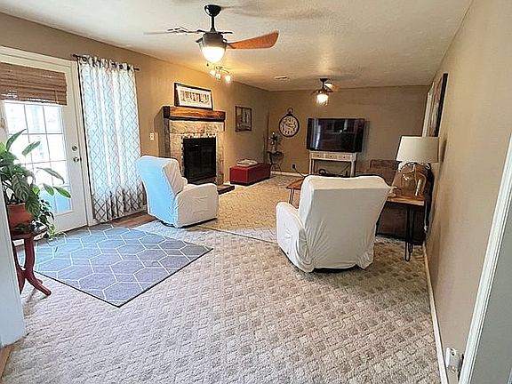 Home offers 3 bedrooms, 2.5 baths, 2 living areas, eat-in kitchen with electric oven and full size gas range, large walk-in pantry with additional storage space, gas-assisted wood burning fireplace. All rooms are spacious, storage through out, including a cedar closet in hallway, extended back patio area and fenced yard. Large Master with walk-in closet and additional closet. There are 2 storage units in back - 1 can be used as a working shop. Walking distance to schools pre-K through mid-high, public park and swimming pool. Golf course also located in neighborhood. New roof, exterior siding, paint and guttering in Nov. 2021. Contact owner to schedule a showing.