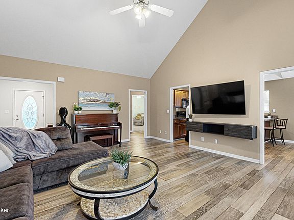 Welcome to 6524 Brook Valley Drive, a charming 3-bedroom, 2-bathroom ranch style home that combines style and functionality! Nestled on a desirable corner lot, this property features stunning hardwood floors throughout the main living spaces and a thoughtfully designed split floor plan. The vaulted ceilings in the great room create an open, airy space, perfect for gatherings or cozy evenings at home. The kitchen offers an abundance of storage and counter-space along with a bar for extra seating. The spacious primary suite offers a true retreat with a luxurious bathroom featuring a soaking tub, separate shower, dual-sink vanity, and a walk-in closet. Additional conveniences include first-floor laundry and an attached 2-car garage, making everyday living a breeze. The two additional bedrooms are of good size and another full bathroom is found on the main level. Step outside to a fully fenced yard, ideal for pets, play, or outdoor entertaining. The unfinished basement offers endless possibilitiesit's already roughed in for a bathroom and provides the perfect space to create a home gym, office, or additional living area while still leaving plenty of room for ample storage. Don't miss the opportunity to make this beautiful property your next home. Schedule a private showing today and see all that 6524 Brook Valley has to offer!