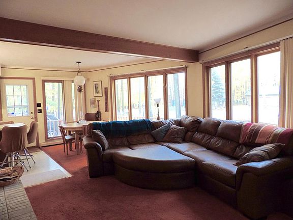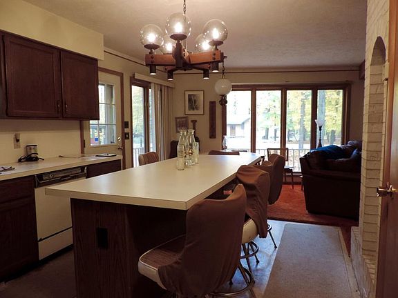 Large 3 bedroom chalet located in Michaywe! Open living room surrounded by windows with a centrally located cozy fireplaces encased with white brick! Main floor master bedroom, formal dining area open from kitchen flowing to living room. Attached 2 car garage & large yard!