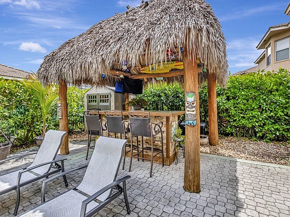 The perfect family and entertainer's home! There's always a party in the backyard with a TIKI HUT, covered patio, and pool with a hot tub! Huge balcony attached to the primary bedroom. Spread out in this 3,303 sq. ft home with features including a 3 car garage, 5 bedrooms PLUS an office, 3 full bathrooms, multiple spacious living areas. Primary bedroom includes a massive walk-in closet with and abundance of storage. Kitchen has updated stainless steel appliances and a walk-in pantry. Home is equipped with a generator hook up in the garage. Accordion shutters throughout with an impact front door. Situated on a corner lot with plenty of parking. Smith Farm is a premier gated family community with plenty of amazing amenities to enjoy!