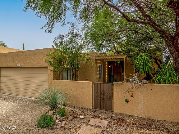 This 3 bed, 2 bath, 1318 sq ft townhome is located in the highly desirable Foothills Townhomes subdivision. Enter from your private front courtyard which opens to a cozy living and dining space with beehive wood burning fireplace and high ceilings, kitchen with stainless steel appliances, and access to the brick patio. With recent updates including a brand new HVAC system, tile added throughout, refinished cabinets, fresh interior paint, new doors, and light fixtures. Master bedroom features a walk-in closet and separate bathroom with shower and tub. HOA pays for sewer, blanket insurance policy, water and pool. With city and desert views and only minutes away from some of the best shopping and dining in Tucson; this property has much to offer.