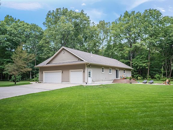 Welcome to this rare Fruitport school district home; come home driving down a paved driveway leading to two and a half acres of privacy from any neighbors or traffic. Built in 2004, this spacious ranch style home offers main floor laundry, a beautiful master bedroom suite with a walk in closet, whirlpool tub with separate shower and a slider off the dining room leading to the luscious green grass with a new patio, off the composite desk recently put in. The lower level has two bedrooms and a family room with a bar area that just needs flooring, and maybe a mini fridge to be complete! This one owner home has many beautiful characteristics to make you love living here. Schedule a showing today!