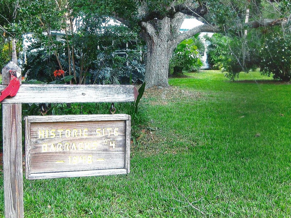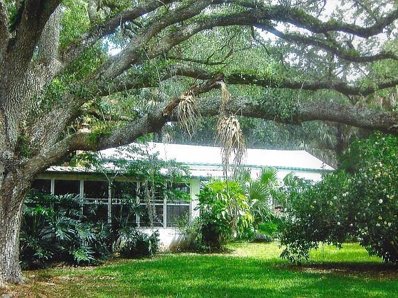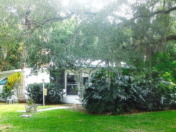 Contingent Contract - Backups Encouraged. Historical Banana River naval station barracks relocated to site in 1948 offers charm and space in delightful vintage home. Eat in kitchen, hardwood flooring, living room with woodburning fireplace. Split bedroom plan - master bedroom features 2 closets, 2 full baths. Family Room overlooks one of the most majestic oak trees in the area. Detached 3 car garage with room for workshop/storage. Fenced dog run. Melbourne Village requires 10% escrow deposit with executed contract; first right of refusal. AHF has a one time $2000 fee & orientation.