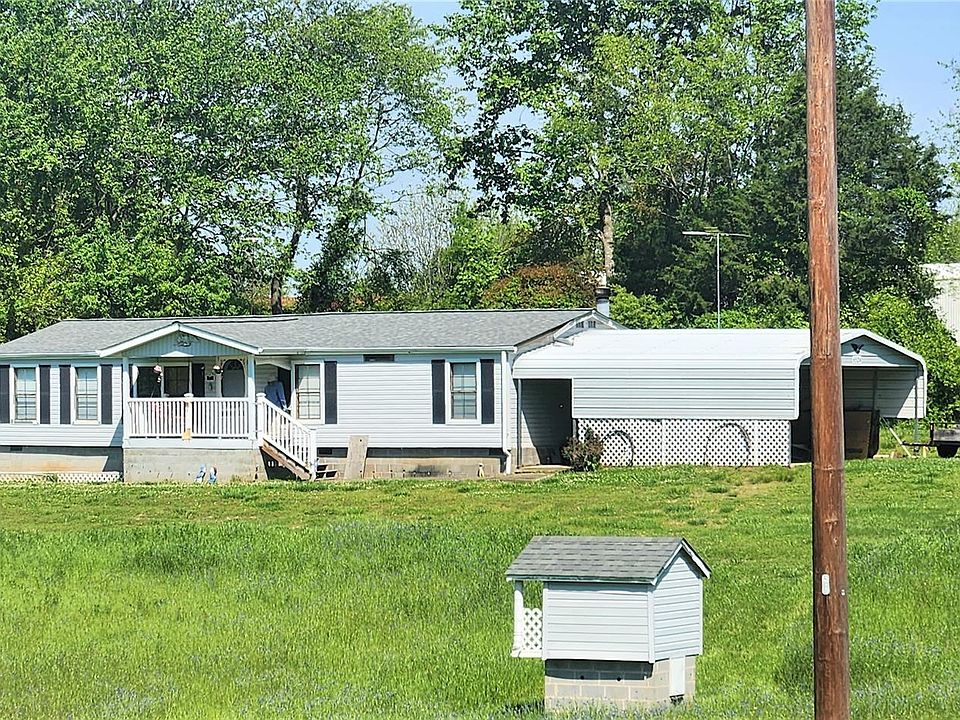 This is a rare find in country area. This home sits on 2 parcels totaling approximately 12.36 acres. The home features 3 bedrooms and 2 baths. There is a pond in the front of the home but does not belong to this property. This is a great home if you are looking for land. The property also has a nice vynil siding storage building and a very unique log cabin as well.
