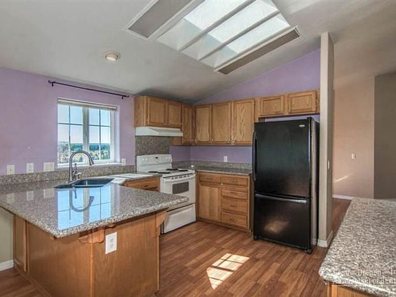 Beautiful single level home on small acreage featuring easterly views! Updated manufactured home with large living room & family room. Kitchen with slab granite counters, eating bar, laminate floors & updated appliances. Spacious master suite with vaulted ceiling, walk-in closet & outside access. Master bath with shower, soaking tub, tile floor. Newly installed laminate wood flooring in guest bedrooms. Laundry room with pantry. Back patio overlooking views. Double car garage plus 30x30 detached shop with high overhead door. Multiple poultry coops, raised garden beds, and young plum trees. 3/4 of property fenced. The perfect start for your Bend mini farm! Buyer to do due diligence.