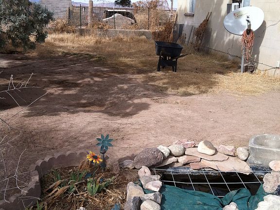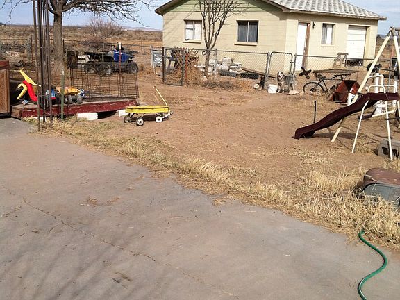 House is made of centerblock on 1.5 acres has 4 bedrooms 1 and a half bath, living room eat in kitchen with a computer room, 75% of the house has customize ceramic tile and the other 25% has tile no carpet!! Fire place in large bedroom, propane fireplace in living room. House, backyard and detached garage are fenced. Corrals in back yard with centerblock tack room.