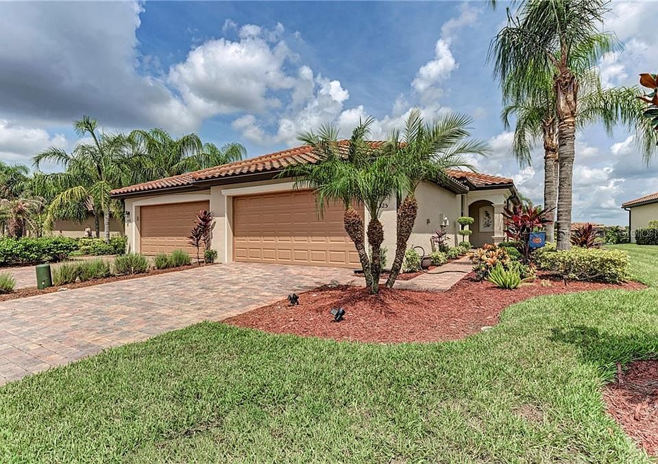 Welcome to River Strand. Lakeside living in the open concept of the Orchid floor plan with 2 bedrooms and a spacious den and 2 full bathrooms, laundry room and a 2 car garage. This resort style community offers a social membership at River Strand Golf & Country Club with many fun activities. Be on vacation everyday with a 27 hole Arthur Hills designed golf course, 9 Har-Tru Tennis courts, 8 pickleball courts, 2 resort pools, 6 satellite pools, Clubhouse and restaurant, social events, Community Center, & 2 Fitness Centers in the Luxury Gated Community w/ 24 hour security & lawn maintenance. Large living and dining room combination are perfect for entertaining quests. Kitchen offers ample cabinet space, stainless steel appliances, granite countertops, pantry, and breakfast bar. This Villa has 18" ceramic tiles through out living spaces set on the diagonal and cozy carpet in the bedrooms. Just professionally painted inside & out. Custom designed closets and tropical landscaping. MOVE IN