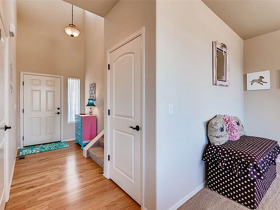 Fantastic 4 Bed, 3 Bath, Tandem 3 car garage with mountain views from front of the house. Located on private Cul-de-Sac location on one of the largest lots (10,121 sq ft) Open concept living, dining and kitchen with island perfect for a couple bar stools. Granite in kitchen and powder room. Hardwoods in entry, dining and kitchen walkout dining room to nice deck, enjoy fully fenced large yard. Cinnamon maple stained cabinets throughout the home. Large master bathroom suite upstairs with 5-piece bath, soaking tub & large walk-in closet, Upper level laundry with folding table. Remaining 3 bedrooms upstairs share full bath with dual sink vanity. Custom blinds throughout. Garage large enough for three cars plus storage (attached tandem) Two ceiling fans (living and master bedroom) Central air conditioning, Whole home humidifier, Programmable thermostat, Automatic sprinkler system, Sump pump in basement, Insulated garage door, Large unfinished basement with rough-in bath and egress windows