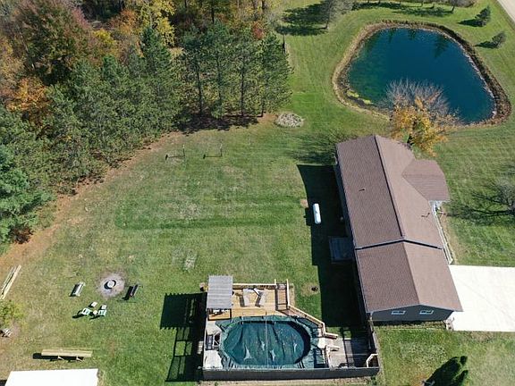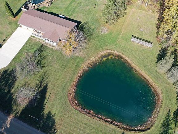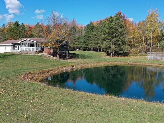 This beautiful 3 bedroom, 2 bath home sits on 15 acres and includes a finished walkout basement that features it's own kitchen, there is a water purification system, owned water softener, 2 car attached garage, concrete driveway, an above ground pool with full walk around deck, a huge pond, tons of wildlife, mature trees, multiple flower gardens, back up propane heaters in case of power outage, an 800 sq. ft. pole barn with an attached 350 sq. ft. shed with concrete floors and full electrical. The beauty and serenity of this rural home is spectacular. Enjoy exploring the woods, sipping tea on the large front porch, swimming in the pool or hunting without having to leave your own property. Beautifully maintained and move in ready - this one won't last long.