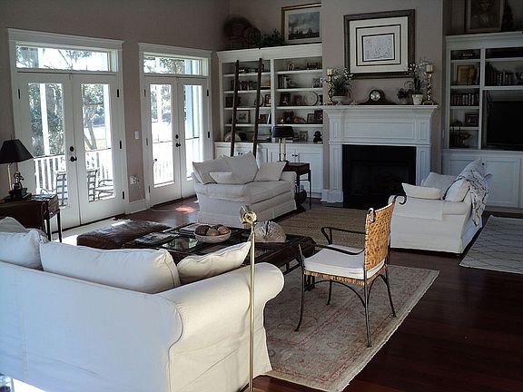 Luxury Custom Builder's Home with Private Dock On A Salt Water Lake Where It Isn't Fishing, It's Catching! This Elevated 3,800 SF home sits on 1.14 acres amongst gorgeous live oak trees on Flounder Lake, where you can catch all the red drum, flounder, shrimp and crab that you can squeeze into your freezer! This home is one-of-a-kind with many upgrades and unique details. Greeting you immediately, you will find the Exotic Brazilian Cherry Hardwood Floors throughout the main level! Other Features include a Formal Dining Room, 5 Spacious bedrooms/4 Full Baths, Open 2 story living room with custom built-ins, Gas-Log Fireplace and a Wall of Windows (Brings the Outside In!), Porches on each Floor, Master Bedroom with Three Custom Walk-In Closets, Master Bath w/ jetted tub and custom-tiled shower, Exceptionally Upgraded Chef's Kitchen, including GE Profile Gas Appliances, "Advantium" Dual Ovens w/ Speedcook Technology (Cooks 4 X's faster), Custom Cabinets, Marble Counters, Lots of Storage and More, Wet Bar with Sink and Wine Cooler, Crown Molding, Media wiring and speakers throughout. Screened-in porch with tile floor. Claw foot tub in the downstairs guest bathroom. Only 15-20 Minutes from Citadel Mall/West Ashley. You just have to see the sunrise here! Since last purchase: Updated Energy Star High Efficiency Heat Pumps, New "Hurricane, High Impact Dual pane windows" in kitchen and family room areas (lifetime, transferable warranty), complete gutter and drain system installation, custom blinds, 60amp service added to garage with outlets and lighting, including power to dock. 300 sq ft blue stone patio overlooking marsh and additional 16ft dia, blue stone fire pit area.