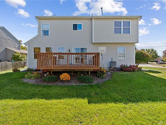 Well maintained home in convenient location, just minutes from WPAFB! This traditional plan is over 2,000 sq ft plus an unfinished basement. It features a two story foyer, open to the formal living room and dining rooms. The kitchen has an abundance of cabinets and counter space, an island, black appliances and a spacious breakfast area! The new buyers will enjoy spending time in the family room with gas fireplace! So many windows in the back of the house allow tons of natural light in. Upstairs, a large master with beautifully remodeled ensuite bathroom and walk-in closet. Three additional bedrooms and a full bath complete the level. The HUGE unfinished basement has limitless possibilities and so much storage! Outside, a perfect time of year to sit out on the deck and enjoy the fall weather. Roof, furnace, AC, garbage disposal, patio door and garage door are newer. This community offers a pool, playground and fishing pond with the HOA of just $260 a year! Quick occupancy.