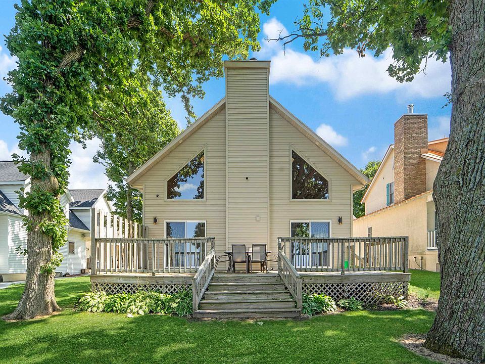 Magnificent sunsets and spectacular lake views are yours to enjoy from the east shoreline of Lake Winneconne! This prime location provides a year round retreat of recreational activities for all seasons. This expansive main level features refreshed kitchen with center-island, tile backsplash, and pantry, GR boasts soaring ceilings, floor to stone ceiling wood burning FP, bar area for entertaining, and patio doors to deck overlooking the lake, as well as 2 main floor bedrooms with remodeled full bath, laundry, and direct access to 2.5 car attached garage with utility storage. The upper level has been renovated to consist of two suite bedrooms with HUGE walk-in closets. Bonus additional 50x130 +/- out-lot across street for future improvements!