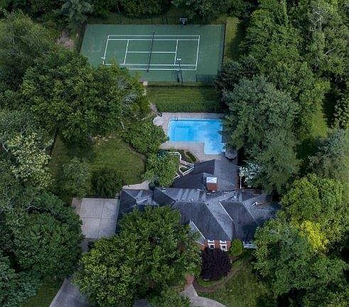 Sprawling Glenview estate on 5.65 acres featuring a 3 car garage, an impressive pool and a magnificent lighted tennis court. The combination of acreage and privacy of Longview Lane truly makes this property one-of-a-kind for those who enjoy recreational activity and entertaining. As you enter the foyer you are greeted by a gorgeous curved staircase and are flanked on either side by the dining room and living room, both with pristine hardwood floors. Just through the foyer is the family room complete with a coffered ceiling, wet bar, a central stone fireplace, and a formal half bath. The great room can be accessed on either side of the fireplace and is tiled with white marble. The room is enhanced by the abundance of natural light and a stunning panoramic view of the rear yard. The kitchen and breakfast room share the rear views and feature gorgeous white cabinets, granite countertops, and stainless steel appliances. Just off the kitchen you'll find the laundry room, garage access and a private staircase to the second floor. The right wing of the property is where you'll find the office with a vaulted ceiling and french doors leading to the master suite. The tray ceiling and sheer size of the master bedroom makes this space the perfect retreat after a long day. This luxurious suite is enhanced by a bathroom with a large soaker tub, dual vanities and two generous sided closets. The second floor is comprised of three bedroom suites, each with their own bathroom and large closet. The lower level offers an open floor plan that spans the width of the home and showcases an area for a gym, a living space, and a kitchenette. Also featured on this lower level is a rec room, private bedroom, and a full bath. Out back you'll find fantastic multi level rear deck that overlooks the pool and lighted tennis court/ full size basketball court as well as a covered patio with access to the walkout basement. Just beyond the tennis court is a bustling wooded area with a beautiful winding creek that passes through the property.