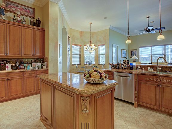4 BR/2.5 BA custom Stresa in cul-de-sac, on professionally landscaped 1/4 acre point lot.Elegant leaded glass double door entry into foyer leads to large open floor plan with diag tile in all living areas.Crown molding. Kitchen features island, 42'' wood cabinets, granite, top of the line SS appliances. Sliders from L/R, and French door from F/R open to large, screened patio with magnificent large lake views with lots of privacy. Master bedroom suite features large his & hers walk-in closets, & bathroom with dual vanities, separate shower and Roman tub. Fourth bedroom being used as den. Newer A/C and W/H. accord shutters. Community offers Heated, salt-water, resort style indoor and outdoor pools, cafe, har-tru tennis courts. Pickle ball is on the way!Enjoy the country club lifestyle