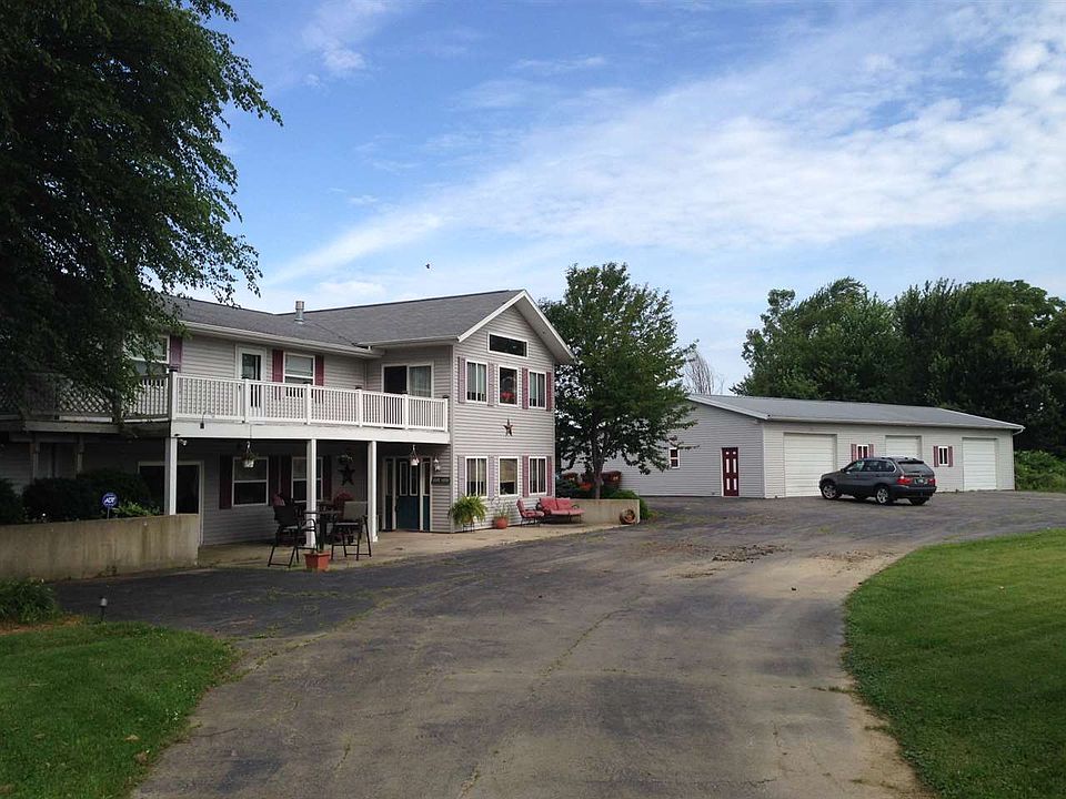 Five acres and pond come with this comfortable country home, with garage or barn storage for multiple cars and other vehicles. Open and large family kitchen and spacious dining area. Bar room with cabinets, sink and fridge. Master bedroom is seriously oversized with awesome morning sun, fireplace, has own bathroom suite with whirlpool tub, walks onto deck. There are a total of three bedrooms and three baths. Sets back off of County Road 300 W in an estate like setting. Near St Rd 120.